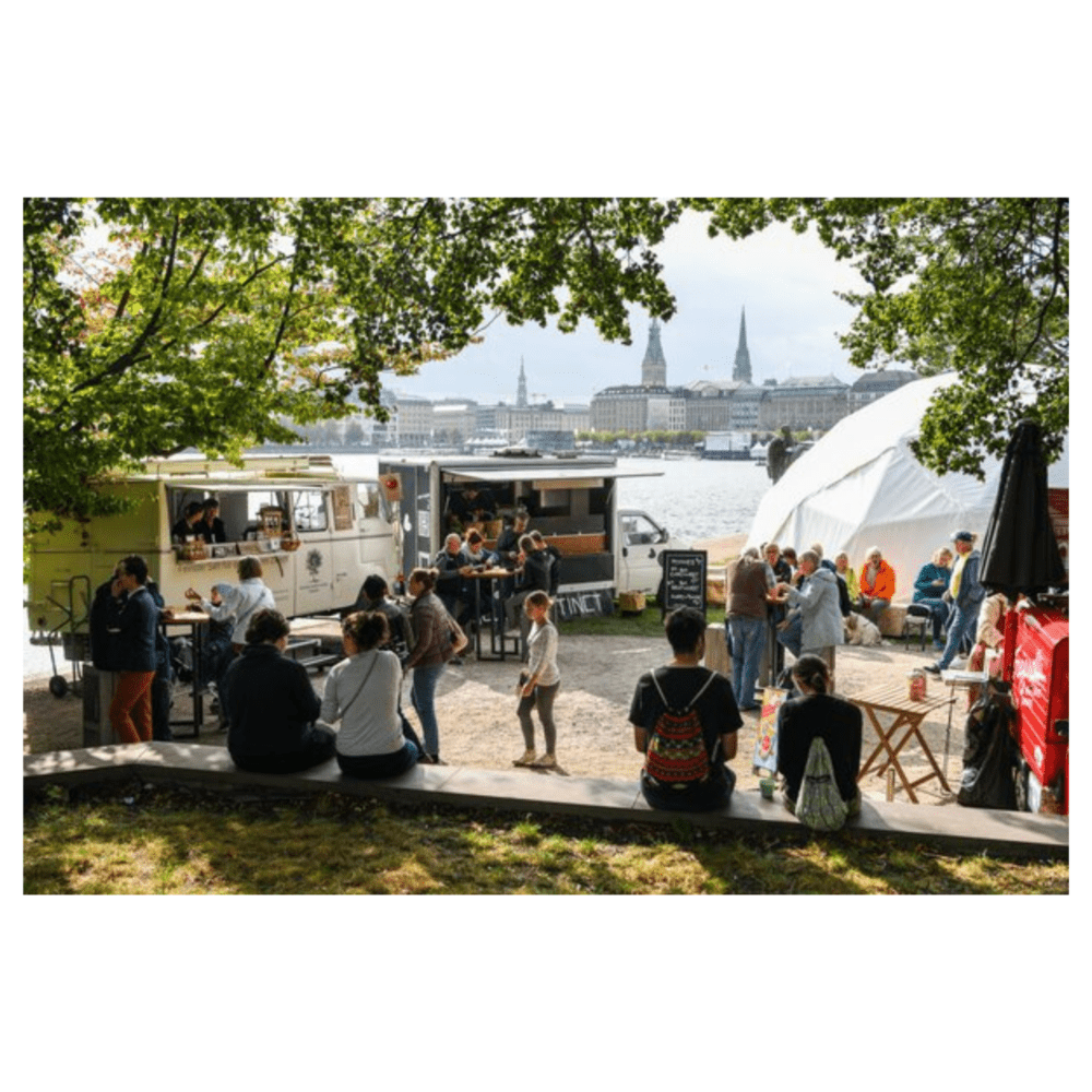 Das Bürgerfest zum Tag der Deutschen Einheit 23 schaffte mit über 700.000 Besucherinnen und mehr als 250 Akteur:innen große Aufmerksamkeit für den Themenschwerpunkt Nachhaltigkeit. Mit viel Eigeninitiative und dank Subvention setzte die bergmanngruppe hier das erste übergreifende Mehrwegsystem um. Die durch Hamburg Tourismus beauftragte öffentliche Veranstaltung ohne Eintritt fand zentral rund um die Binnenalster statt.