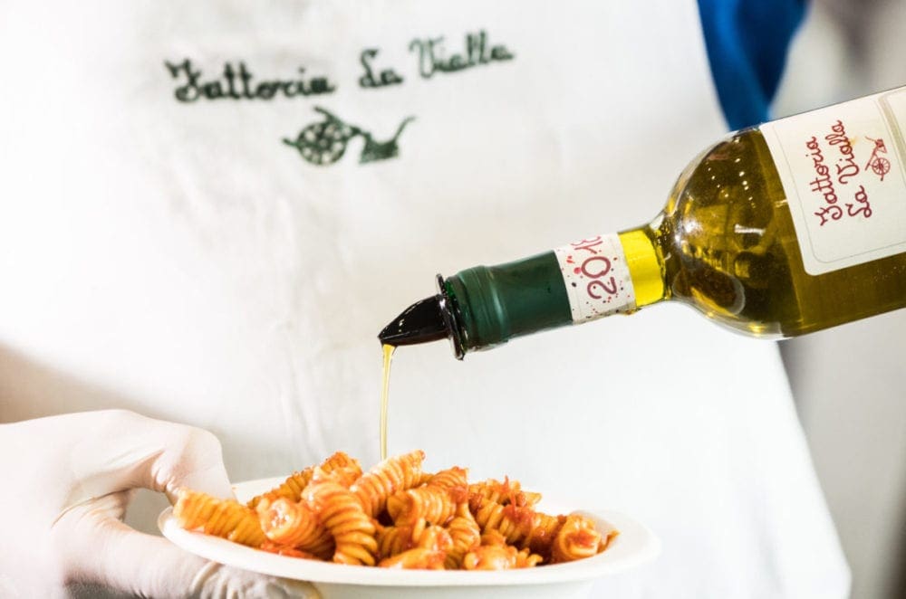 Die Fattoria La Vialla, Partnerin der Pasta-Party am Frankfurter Marathonwochenende, ist ein Landgut in der Toskana, auf dem demeter-qualifizierte Lebensmittel hergestellt werden. Alle Erzeugnisse der Fattoria La Vialla stammen aus eigenem Anbau und Herstellung. So auch die rund 2 Tonnen Bio-Nudeln und 1.900 Liter Bio-Sauce der Fattoria La Vialla, die im Rahmen der Pasta-Party beim Frankfurt Marathon an die ca. 10.000 Teilnehmenden ausgeschenkt werden. Jede Portion Nudeln mit Soße verbraucht 430 Gramm weniger CO₂ als das vergleichbare Produkt eines konventionellen Herstellers. 2018 ergab sich hierbei beispielsweise eine Einsparung von 3078 kg CO₂ im Vergleich zu einem konventionellen Catering.