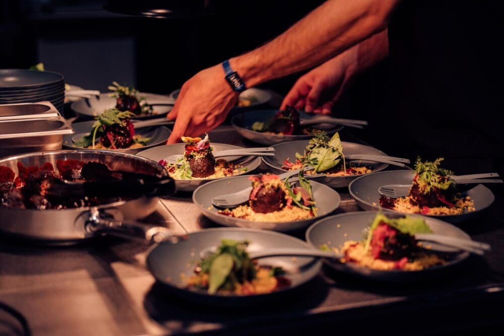 Für OMR23 wurde das bestehende Mehrwegkonzept auf Speisen erweitert. Hierzu wurde als Test ein Pilotprojekt in der Food-Halle umgesetzt, in welcher 20 Food Outlets platziert waren und rund 38.000 Speisen an zwei Veranstaltungstagen verkauft wurden. Mit Vytal Events wurde ein Dienstleister gefunden, der auf die Umsetzung und Organisation von Mehrweglösungen bei Veranstaltungen spezialisiert ist und über Erfahrung mit den logistischen Herausforderungen der Verteilung und der Reinigung verfügt. Beim Pilotprojekt in der Food-Halle wurden dabei rund 93.000 Geschirrteile eingesetzt, etwa die Hälfte davon war Besteck. Um den Ablauf mit Pfand möglichst einfach für die Besuchenden zu gestalten, wurde das erhobene Pfand in das integrierte Cashless-Payment-System der Veranstaltung integriert. Da es sich um ein After-Payment handelt, konnten die Besuchenden wie gewohnt ihre Speisen kaufen, ohne dass sie für die Pfandbeträge in Vorkasse treten mussten. Dabei sorgten verhältnismäßig hohe Pfandpreise – bei Tellern und Bowls beispielsweise 5 Euro – für eine hohe Rücklaufquote. Bei den Heißgetränken konnte noch keine Mehrweglösung implementiert werden und es wurde weiterhin noch mit Einwegbechern gearbeitet. In Kooperation mit It’s your part konnten dabei 20.000 Pappbecher wieder gesammelt und recycelt werden.